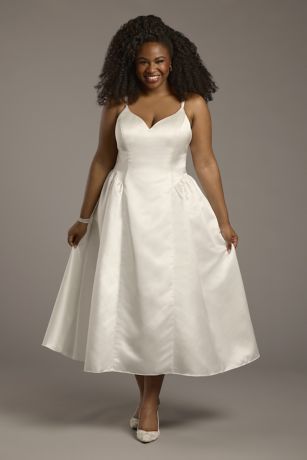 Sleek and stylish, this satin midi dress features a drop waist silhouette and delicate spaghetti straps for an effortlessly chic look. Perfect for parties, date nights, and all your bride-to-be events.