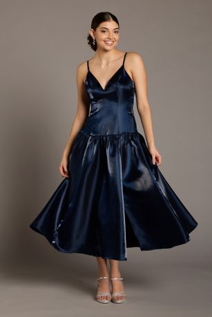 Satin Organza Drop Waist A-Line Dress