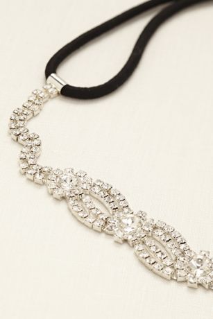 - Stretch headband is decked out with hundreds of tiny, high-shining crystals in a stunning scalloped design.