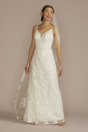 Sequin Floral A-Line Spaghetti Strap Wedding Dress