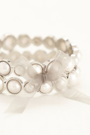 - Set of 2 pearl bangle bracelets accented with a ribbon bow.