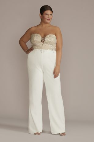 Strapless Beaded Floral Applique Bodice Jumpsuit