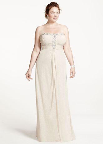 Strapless Glitter Jersey Dress with Shirred Bodice