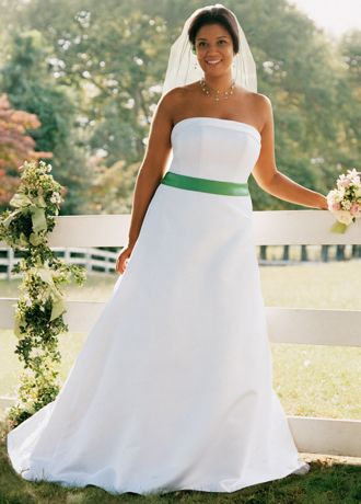 Strapless satin A-line gown with cuff neckline.