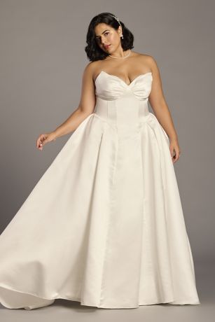 Strapless Satin Basque Waist Ball Gown
