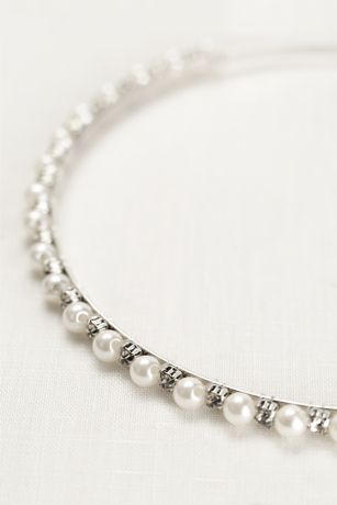 - A single row of alternating pearls and crystals adorn this headband for a dainty but glamorous look.