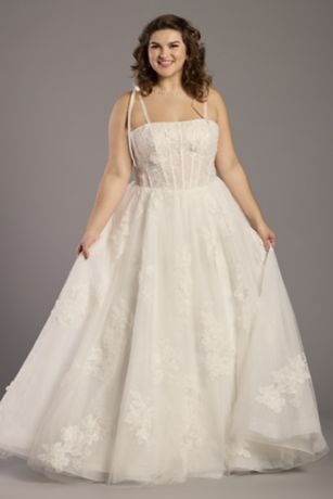 Tie Strap Ball Gown with Beaded Lace Appliques