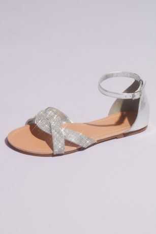 Two straps embellished with micro crystals twist together to form the vamp of this pair of flat sandals. A chic ankle buckle completes the look.