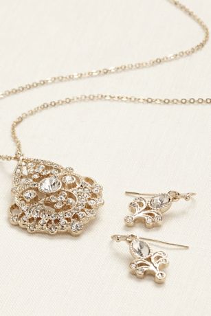 Style your girls in this very intricate vintage necklace and earring set smothered in delicately placed crystals.