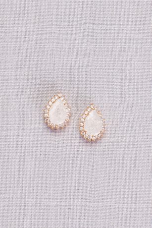 Milky white cubic zirconia teardrop stones are surrounded by a glittering halo on these simply pretty posts.