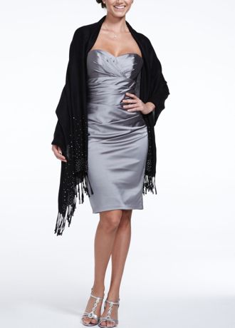 - Twill wrap is adorned with sparkling beaded detailing at the edge.
